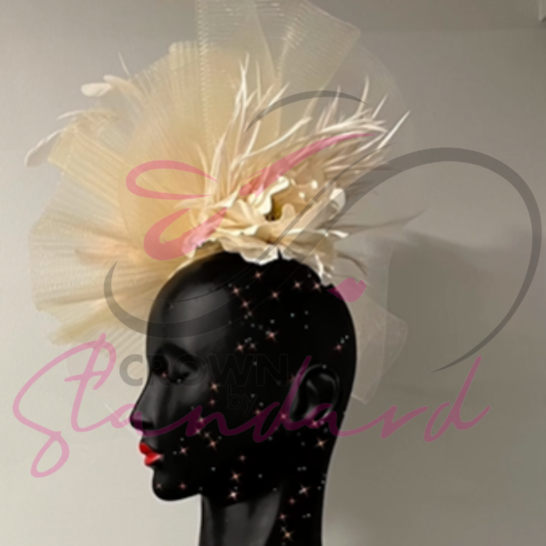 This unique headpiece exudes grace and beauty, making it a perfect choice for weddings, galas, or any elegant occasion.