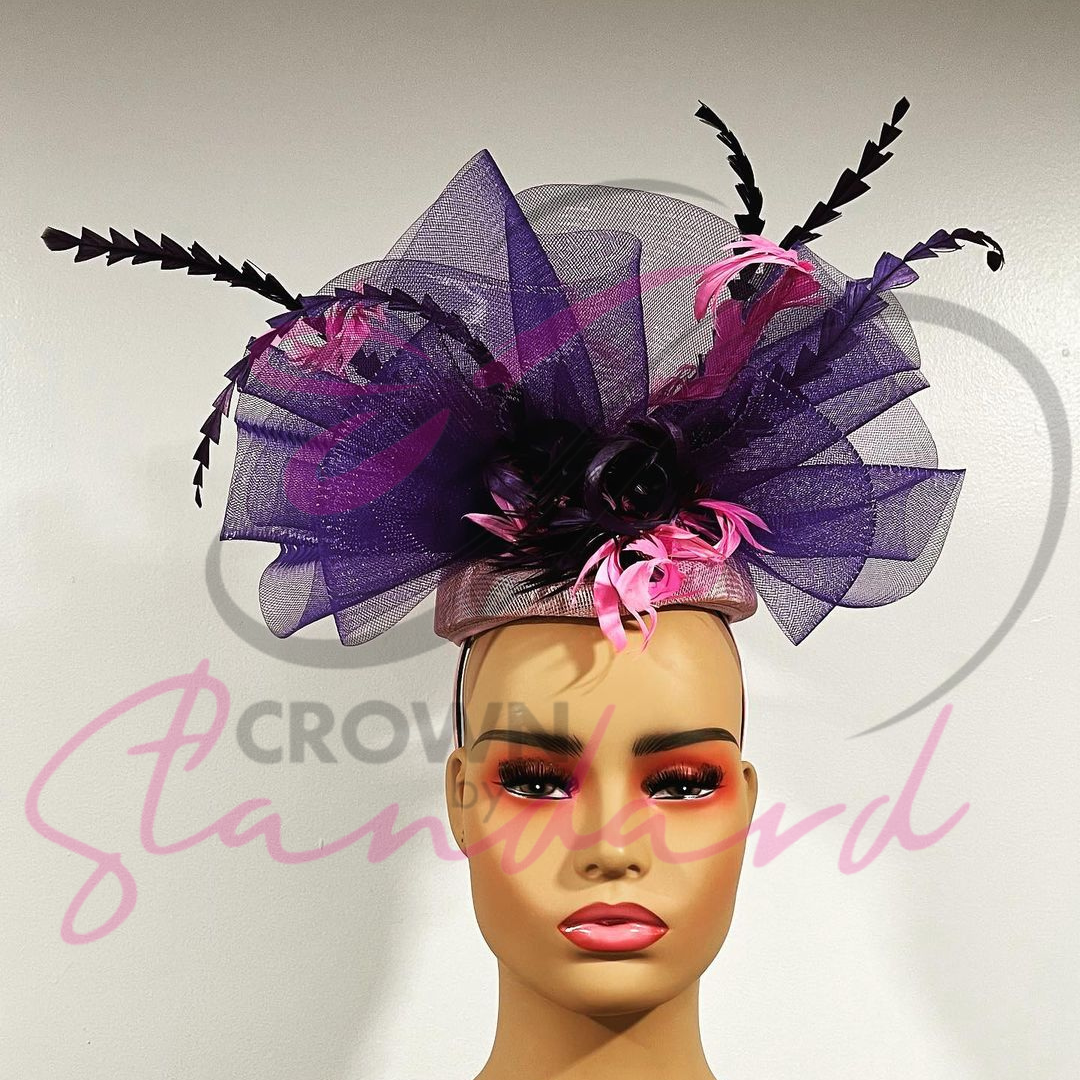 Make a bold fashion statement with our stunning purple and pink fascinator.