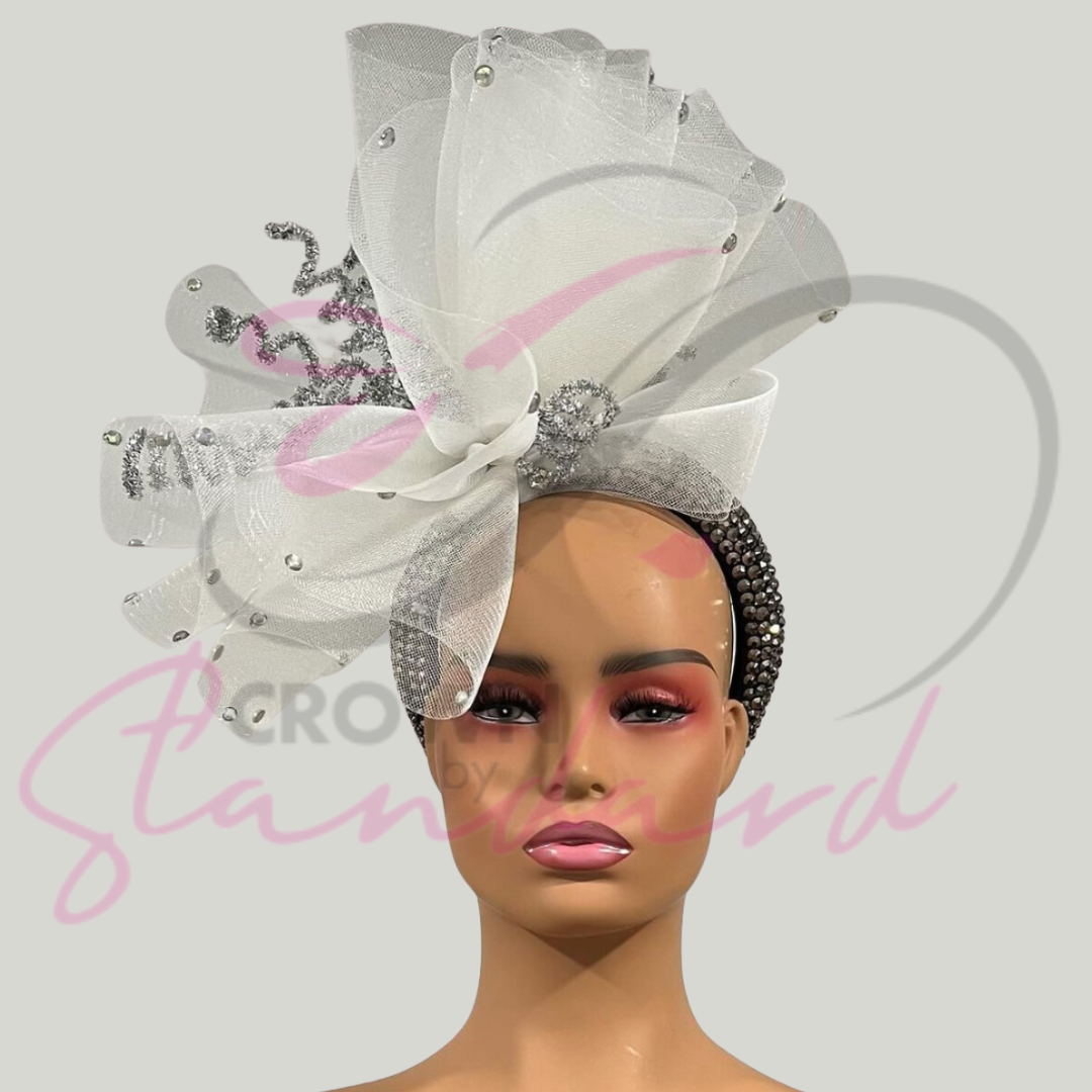 White fascinator with silver design details!
